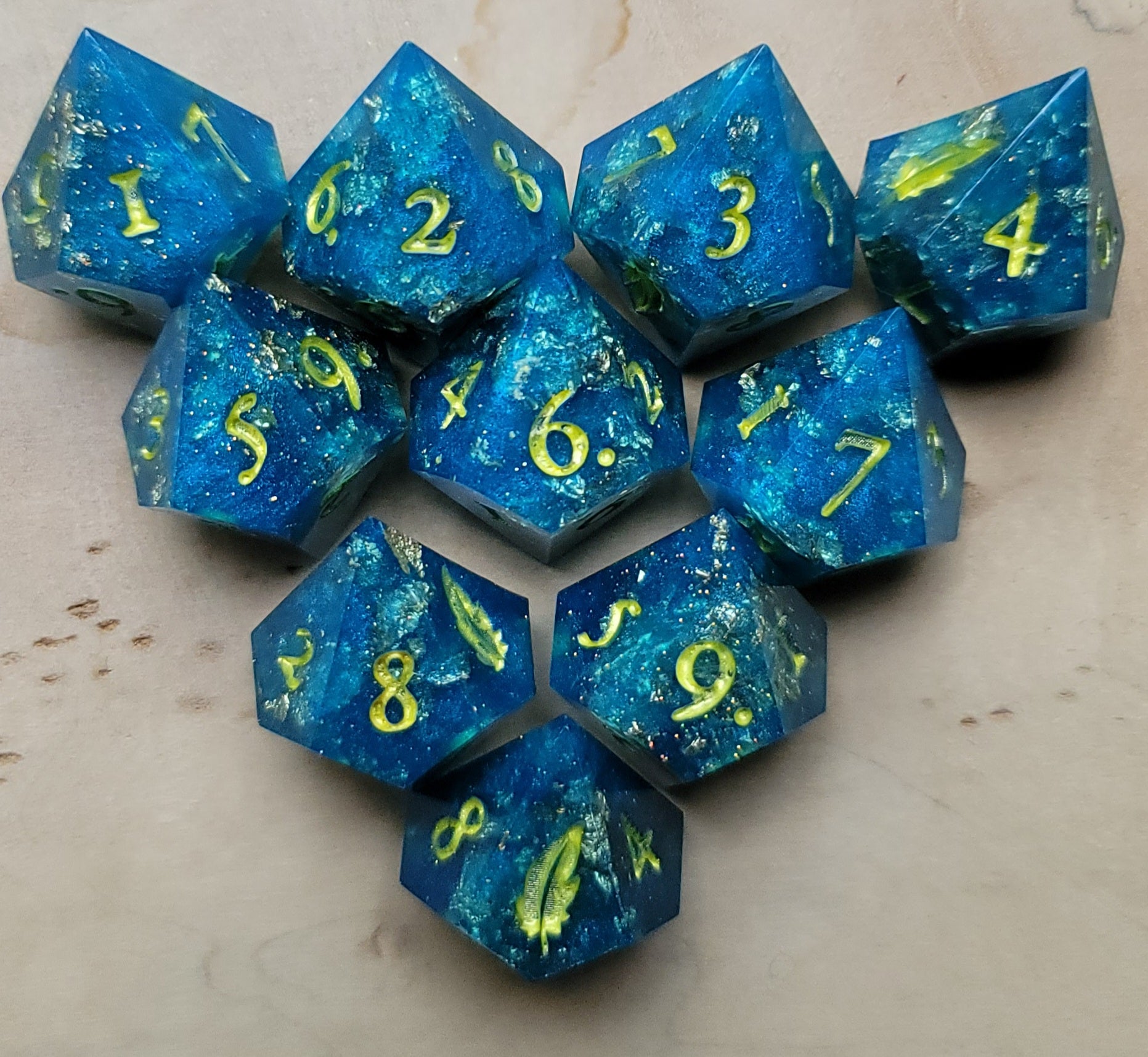 As a storyteller, it is my duty to pass along the tales of the games we love and cherish. As a dice artisan, that means creating a special set of unique dice that tell a specific tale. Perhaps it's the story of your character, reflecting their favorite colors and quirks. Perhaps it's a beloved setting, a place you know and adore.